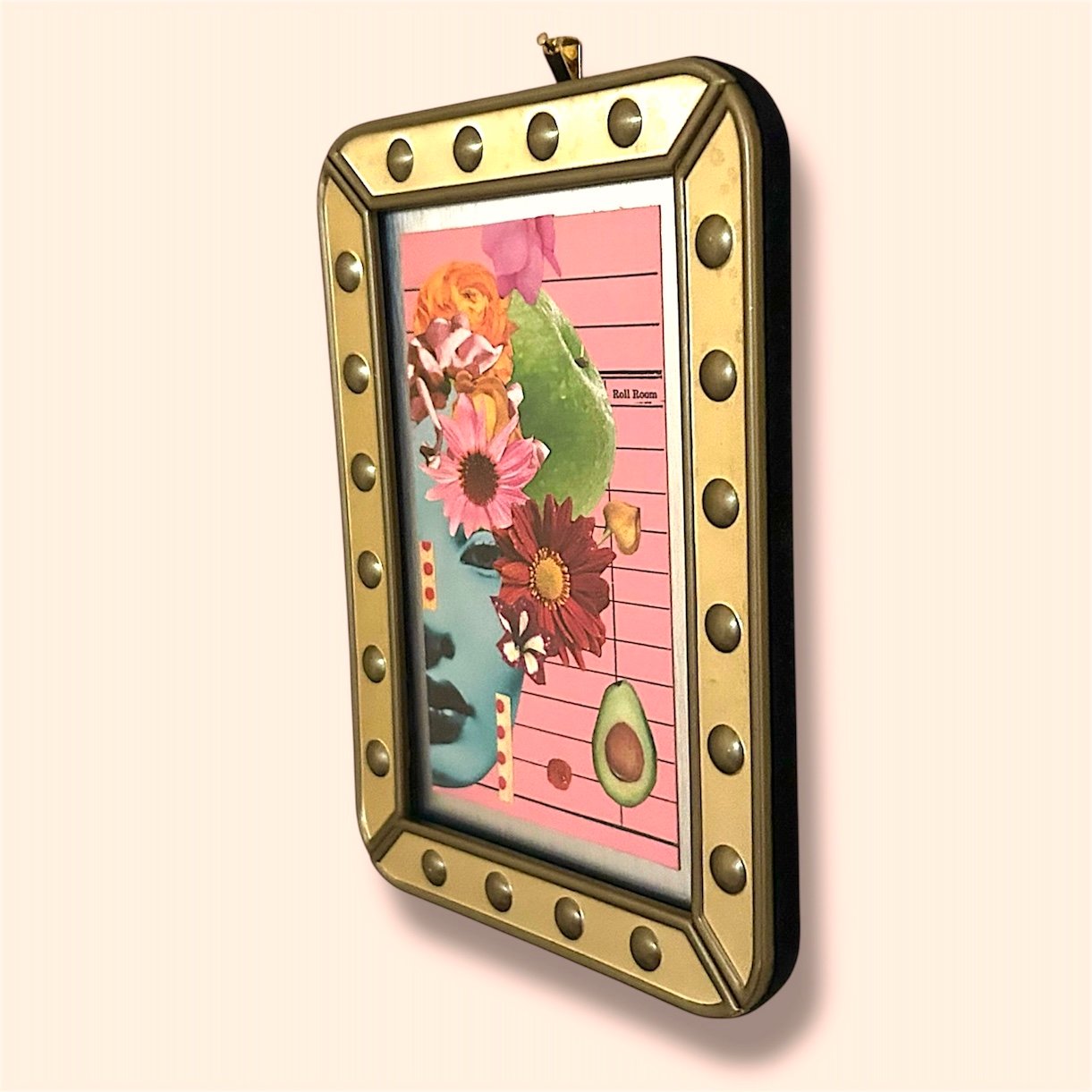 I created this beautiful, colorful, botanical portrait collage on the card. I adhered the card to a 4x6" aluminum panel, and adhered THAT to a cool metal vintage frame.