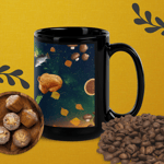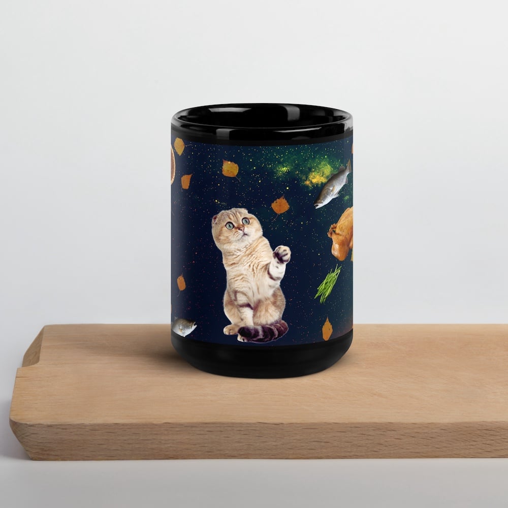 Cat in Space - Thanksgiving Fantasy - Black Glossy Mug - 2 Size Options