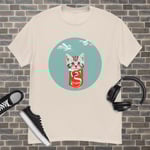 This tee features my original collage artwork, "Cat Fish Head in the Clouds" printed on the front of the tee!