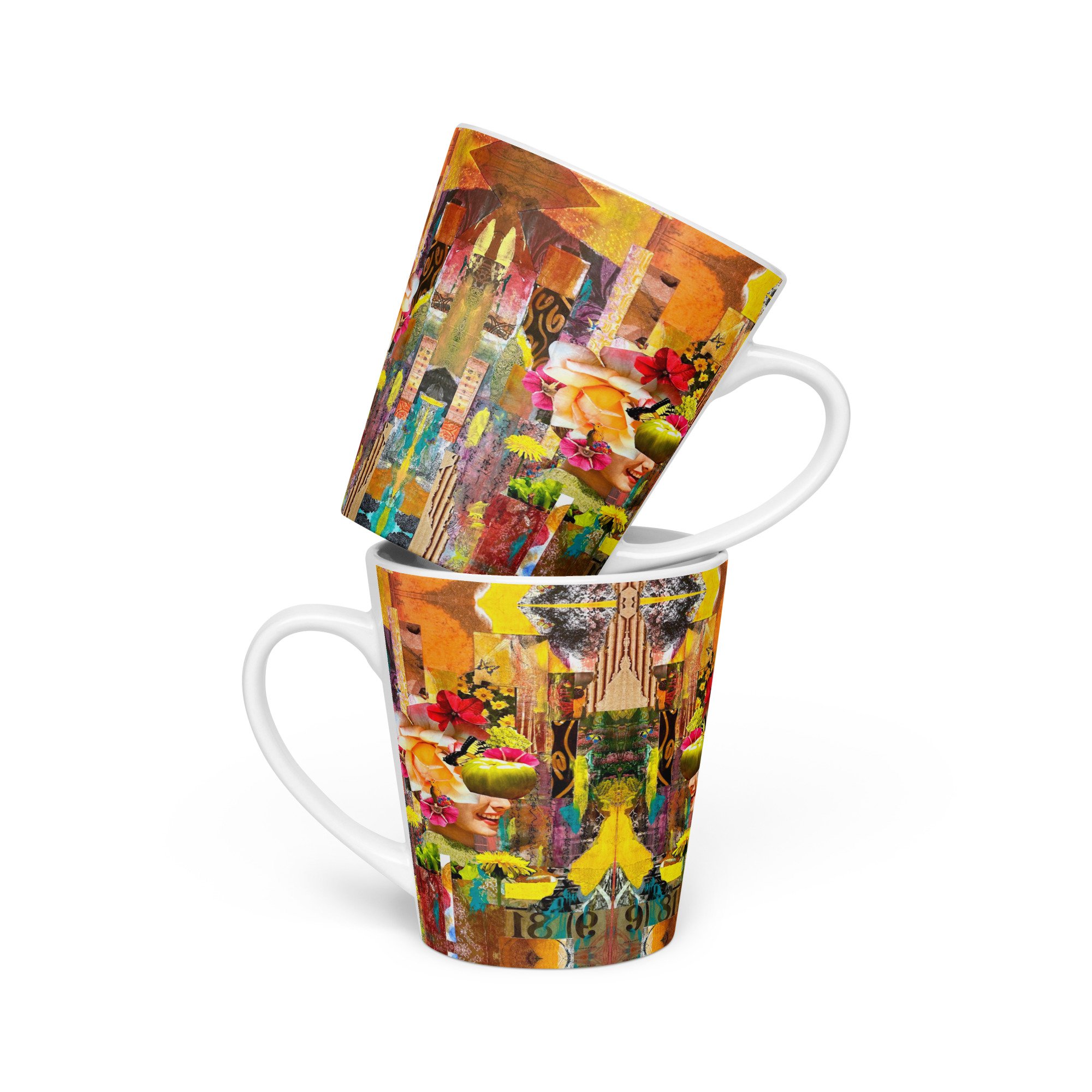 Hear that? That’s the sound of your quiet, stress-free morning. Kick off your morning coffee ritual or cozy up with a late-night tea with this mug designed with a pattern of my colorful, maximalist, JOYFUL mixed media collage!