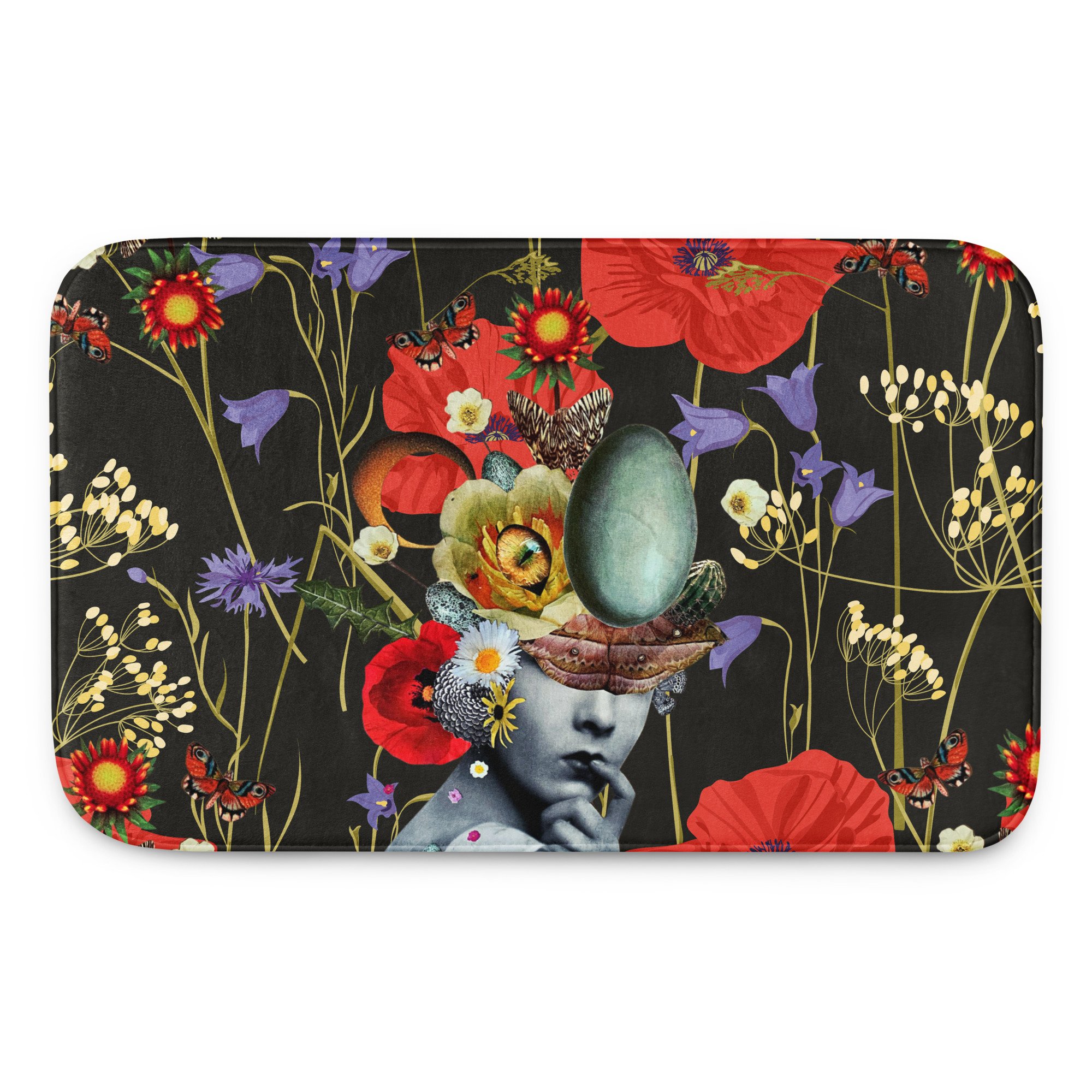 This soft, plush, cushiony bath mat adds comfort and and elegance to any bathroom. Featuring my original collage artwork "The Personification of Eggcellence" superimposed on a gorgeous background of poppies! Poppies are one of my favorite flowers! They are so resilient and symbolic of life and death and dreams!