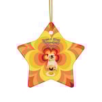 Bring retro charm and adorableness to your home with this glossy ceramic ornament featuring a cut out of my original collage "Sunnyside Up in Spaaace" original cat collage printed on one side of the ornament - available in star, snowflake, or circle shape - your choice! With a smooth finish and elegant gold-toned string, this ornament stands out in any festive setting!