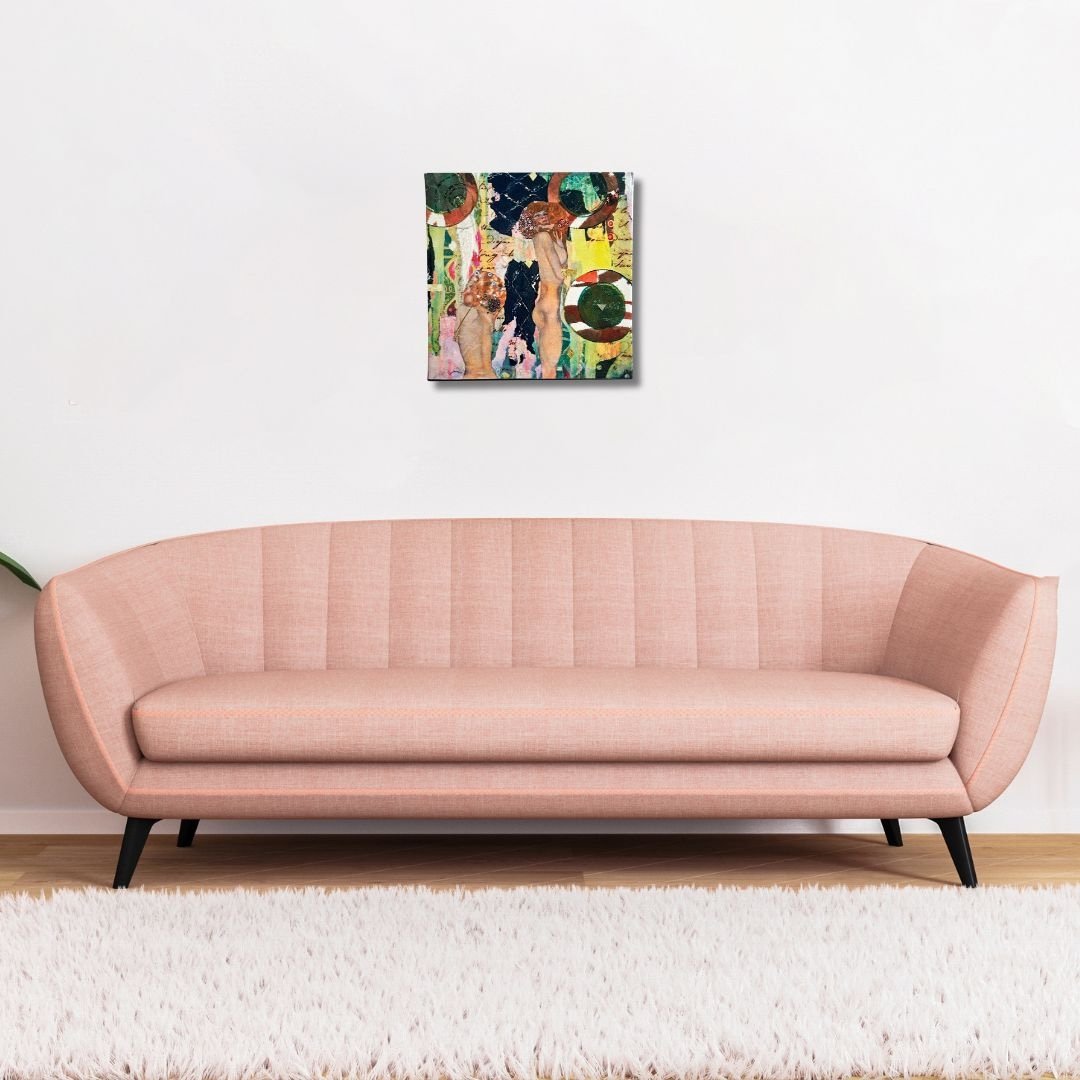 This is one of my older mixed media collages, created sometime around 2017. I love the art of Gustav Klimt, and this collage print has parts of his works in it, including “Water Serpents”. I feel like these ladies are time travelers in their own hot tub time machine, but that is just how my brain works lol.