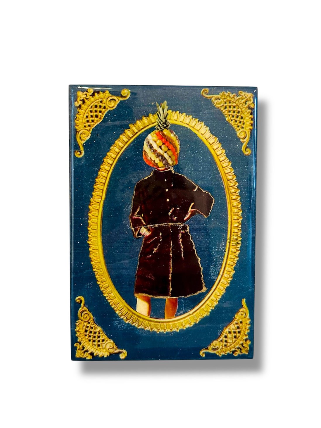 I’m So Fruity, My Head is a Pineapple Made of Fruit Salad - Vintage Food Collage - OOAK - Resin