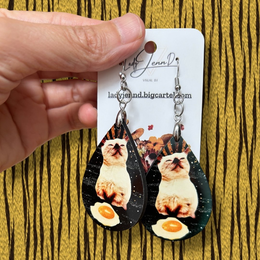 LAST PAIR - Catlightnement - Sunnnyside Up in Spaaace - Sublimation Teardrops