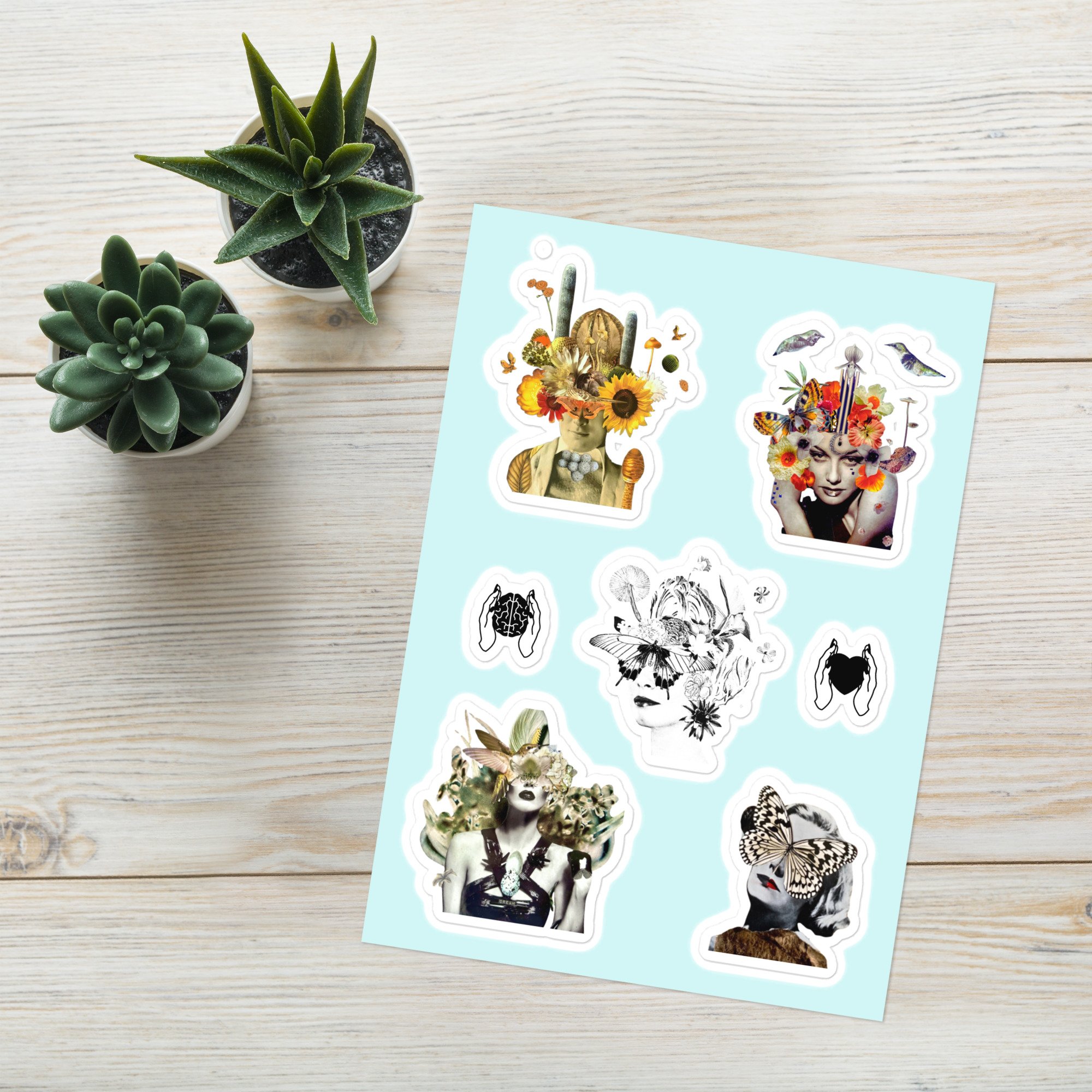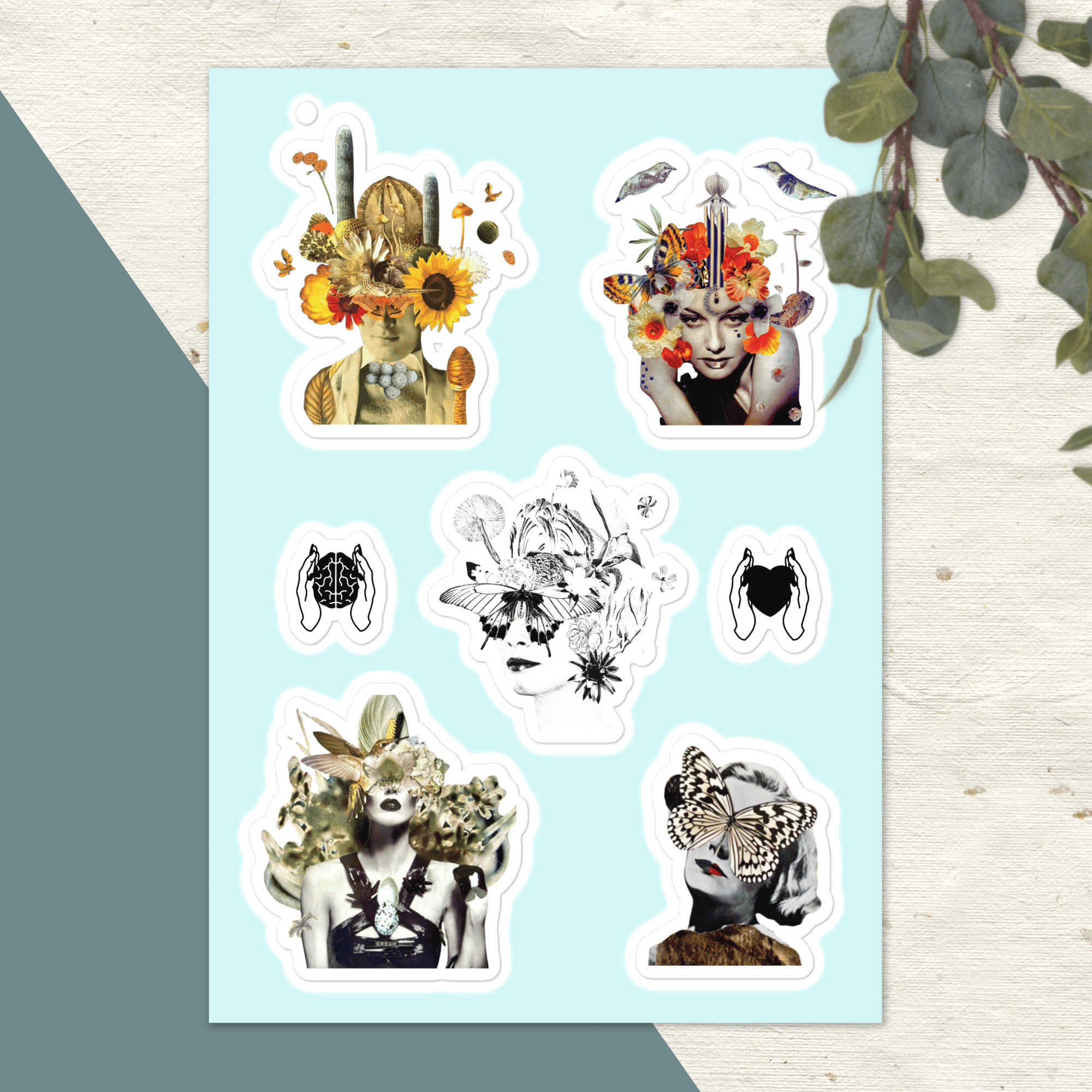 Do you like to add some mystery and intrigue to your life? These glossy stickers are designed just for you. I selected 5 of my original collage stickers, as well 2 tiny complimentary clip art stickers too! Give your favorite items, like a notepad, laptop, or phone case an extra glow and personal touch!