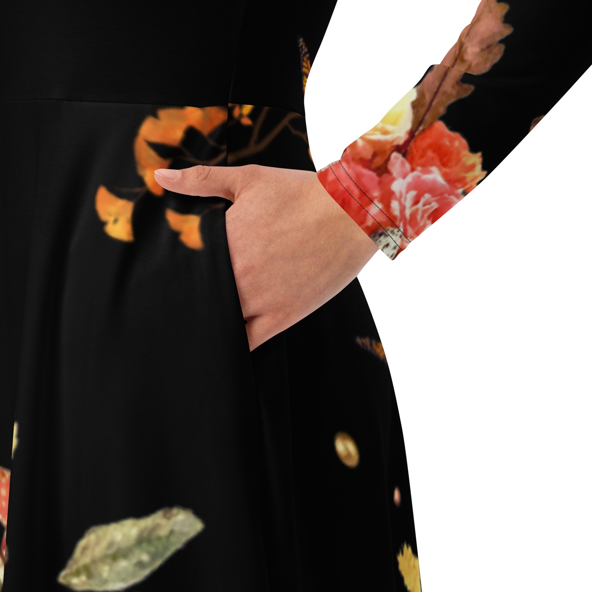 Autumn Night - All Over Print - Long Sleeve Dress With Pockets - Ltd Ed - Black Dress