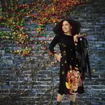 This beauty features my original collage artwork: "Autumn Night" printed all over the black dress!