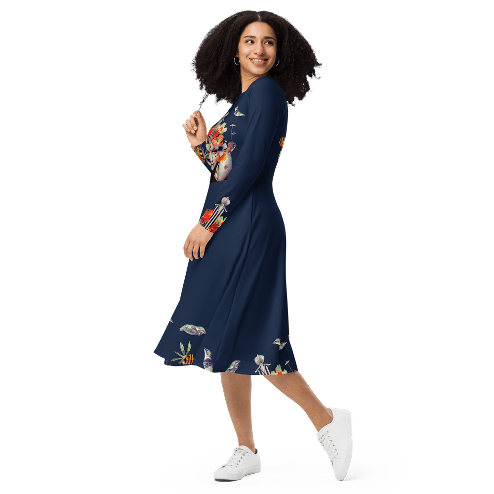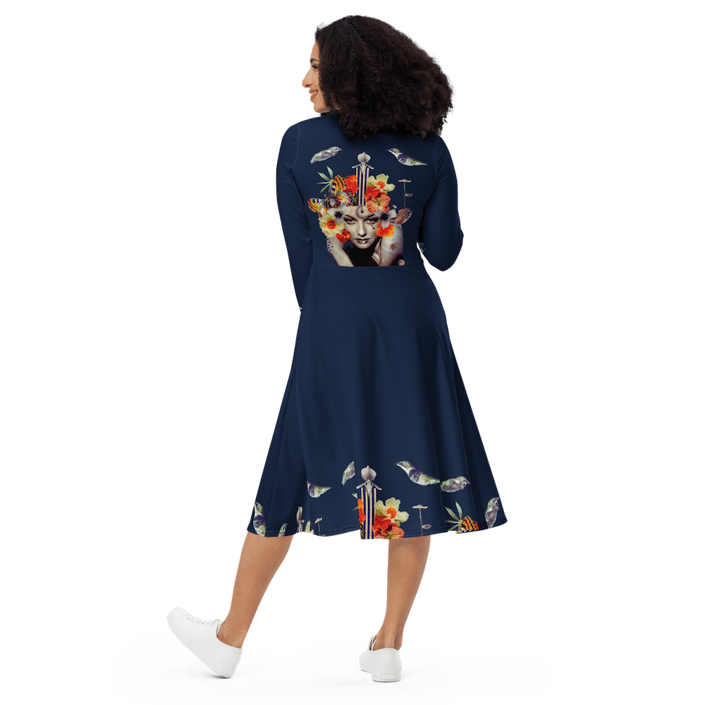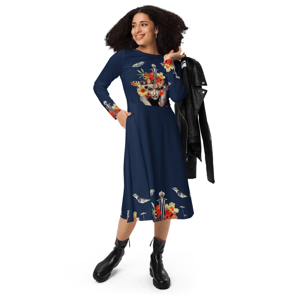 Rhythm of the Moon - All Over Print - Long Sleeve Dress With Pockets - Ltd Ed - Navy