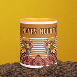 Add a splash of color to your morning coffee or tea ritual! This 11oz ceramic mug not only has my original inspiring collage "She Moves Mountains" printed all over it, but also a brilliant light orange handle and inside. This mug is bound to spice up your home, and will ever remind you of your strength!