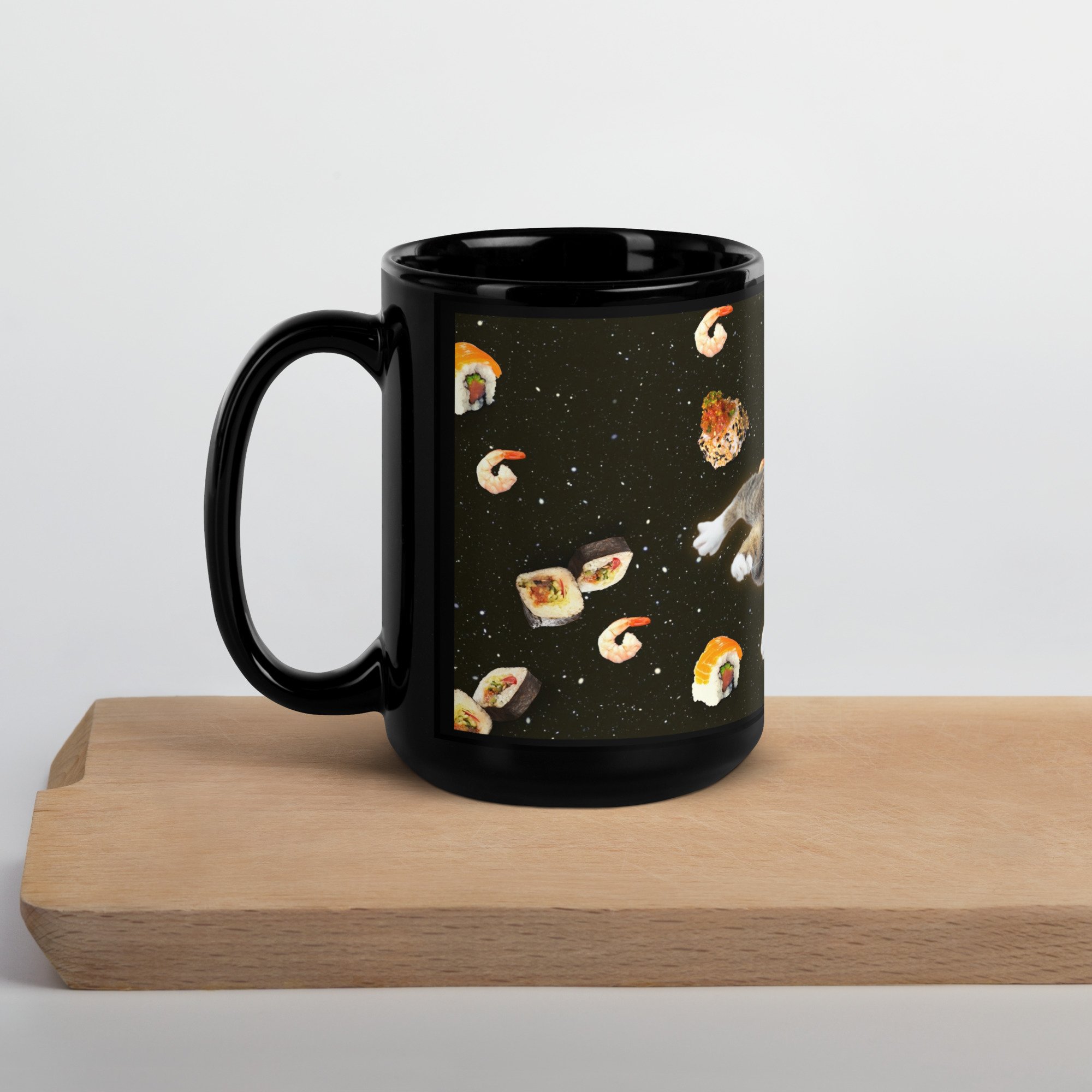 Sushi Cat in Space - Black Glossy Mug - 2 Size Options
