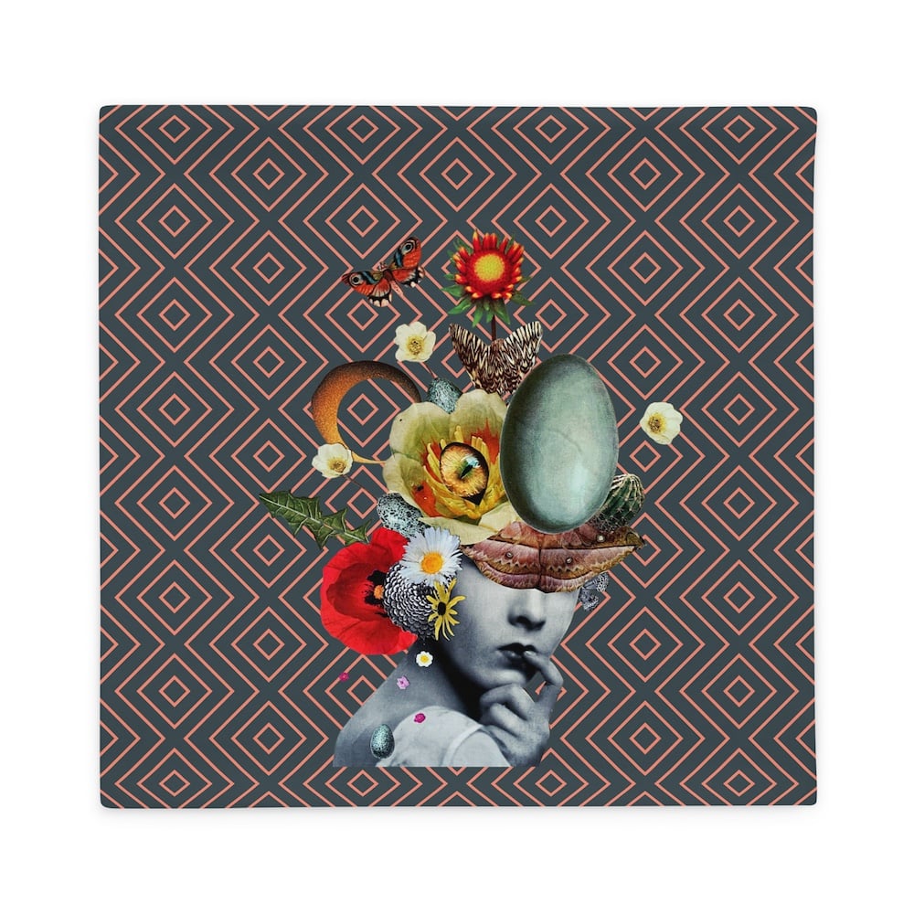 A strategically placed accent can bring the whole room to life, and this soft, comfy pillow case featuring my original collage art is just what you need to do that.