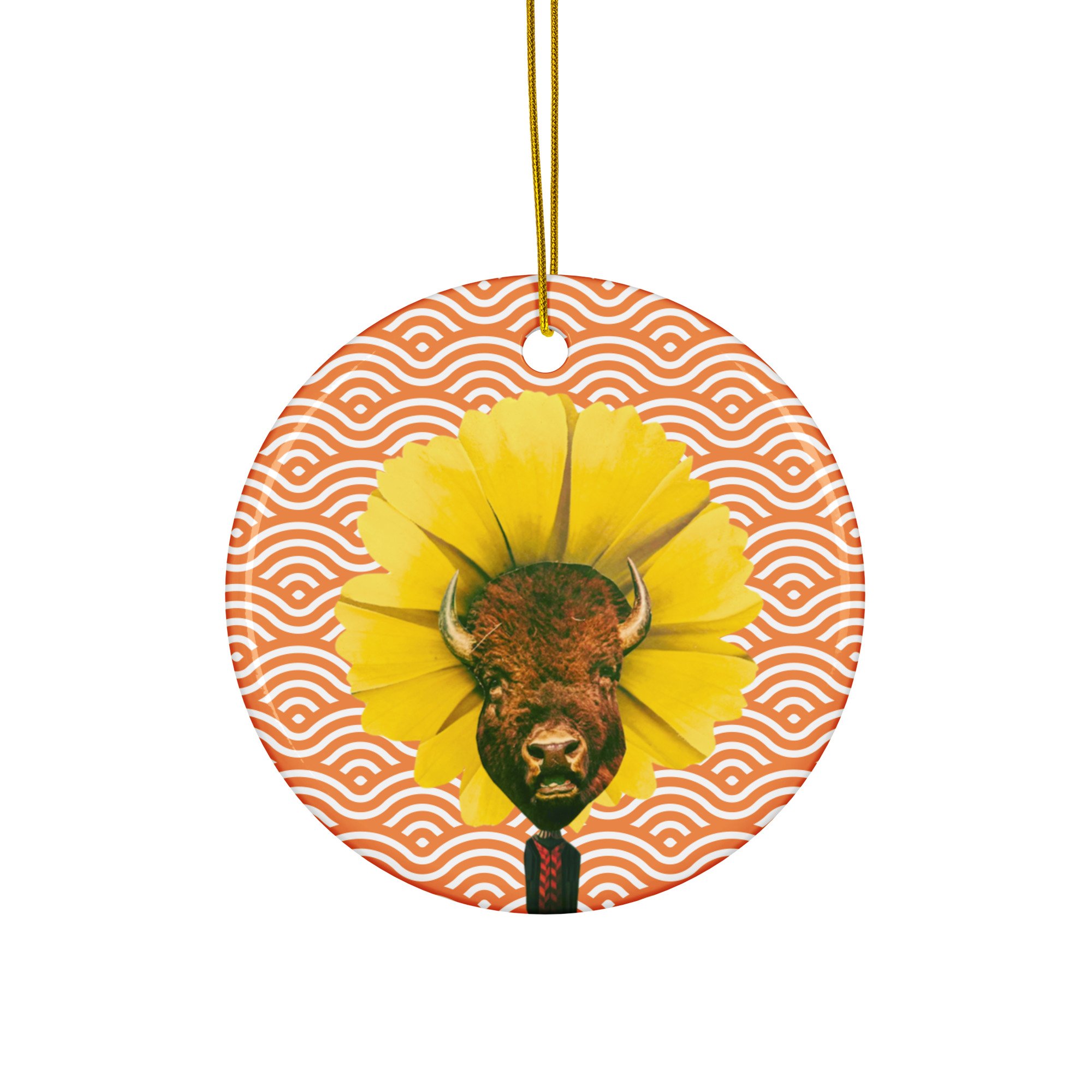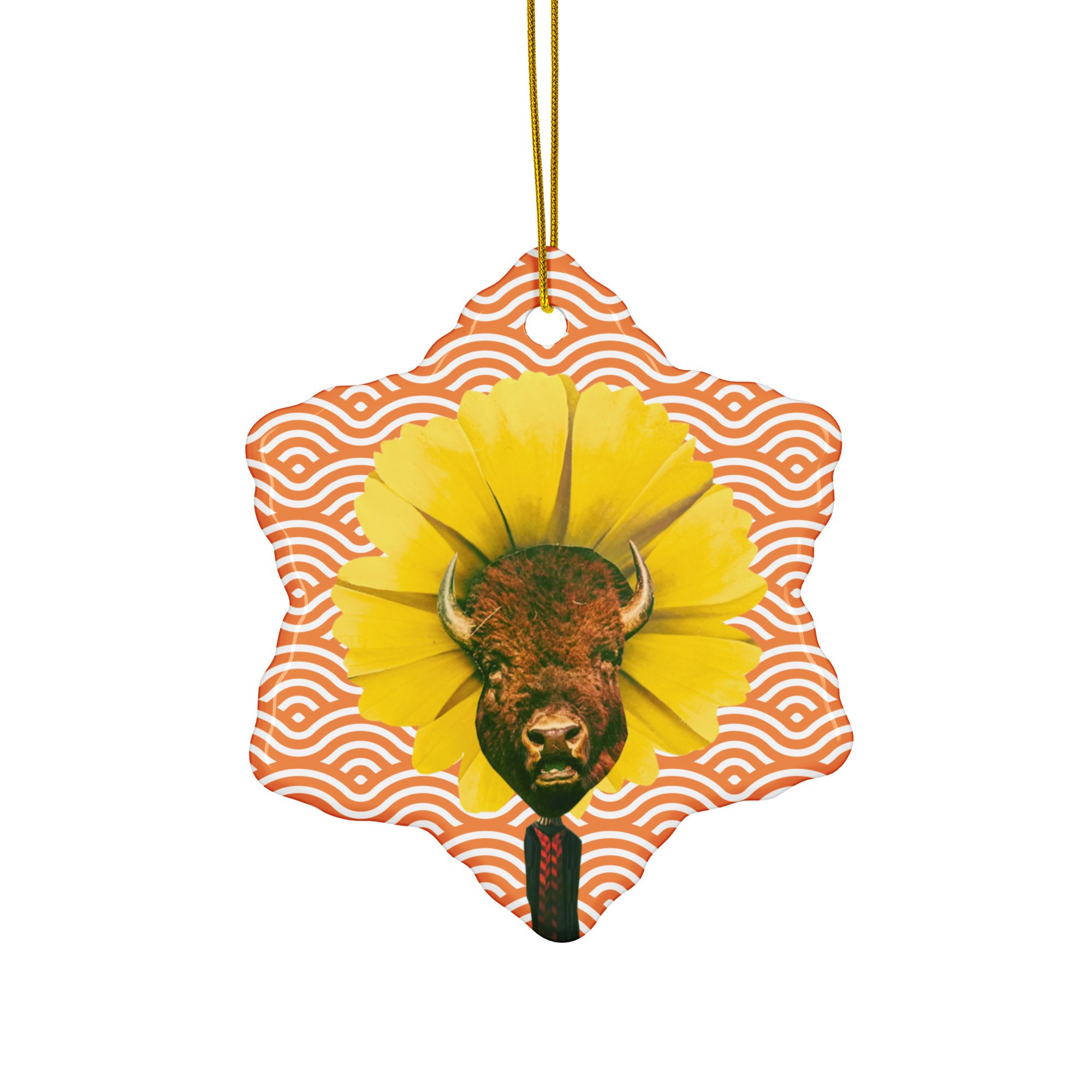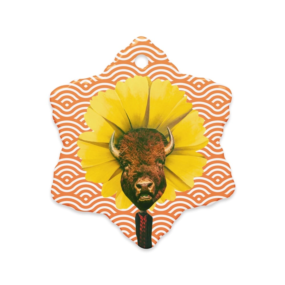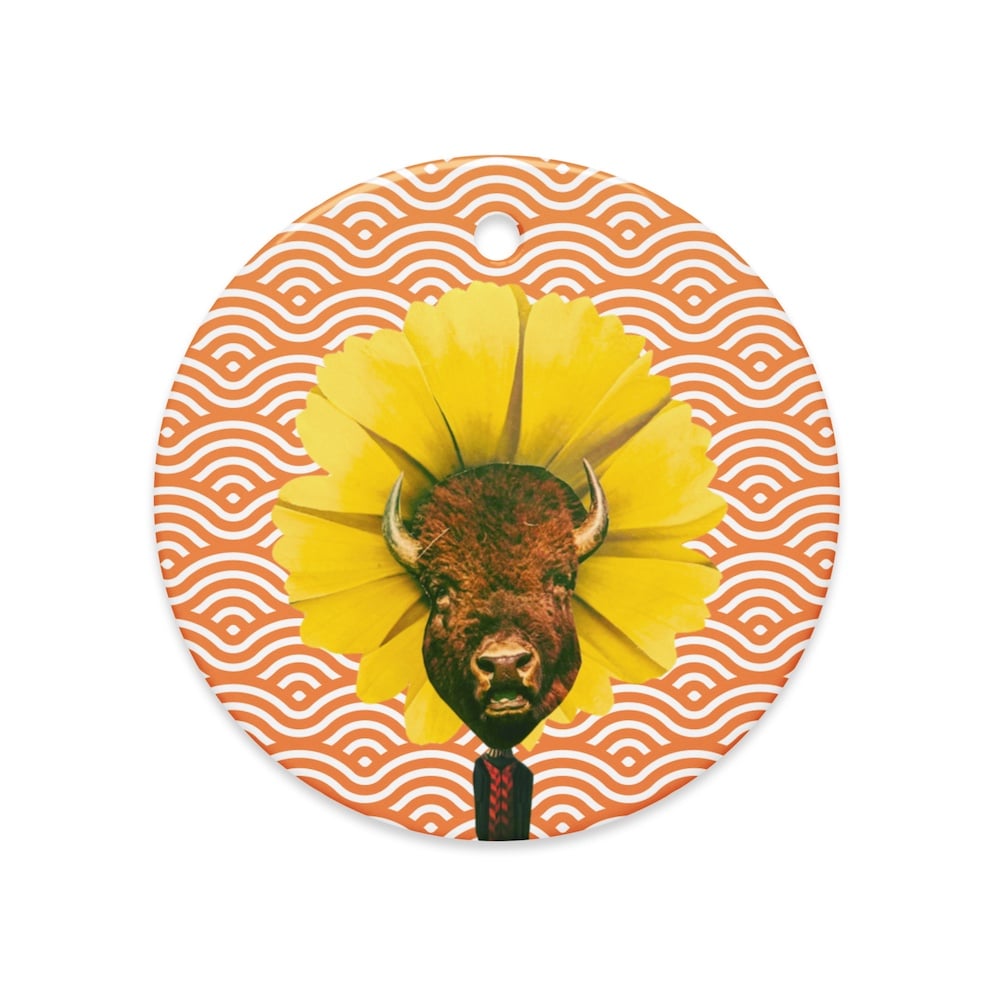 Untamable - Vintage Orange - Unique Ceramic Ornament - Buffalo - Collage Art