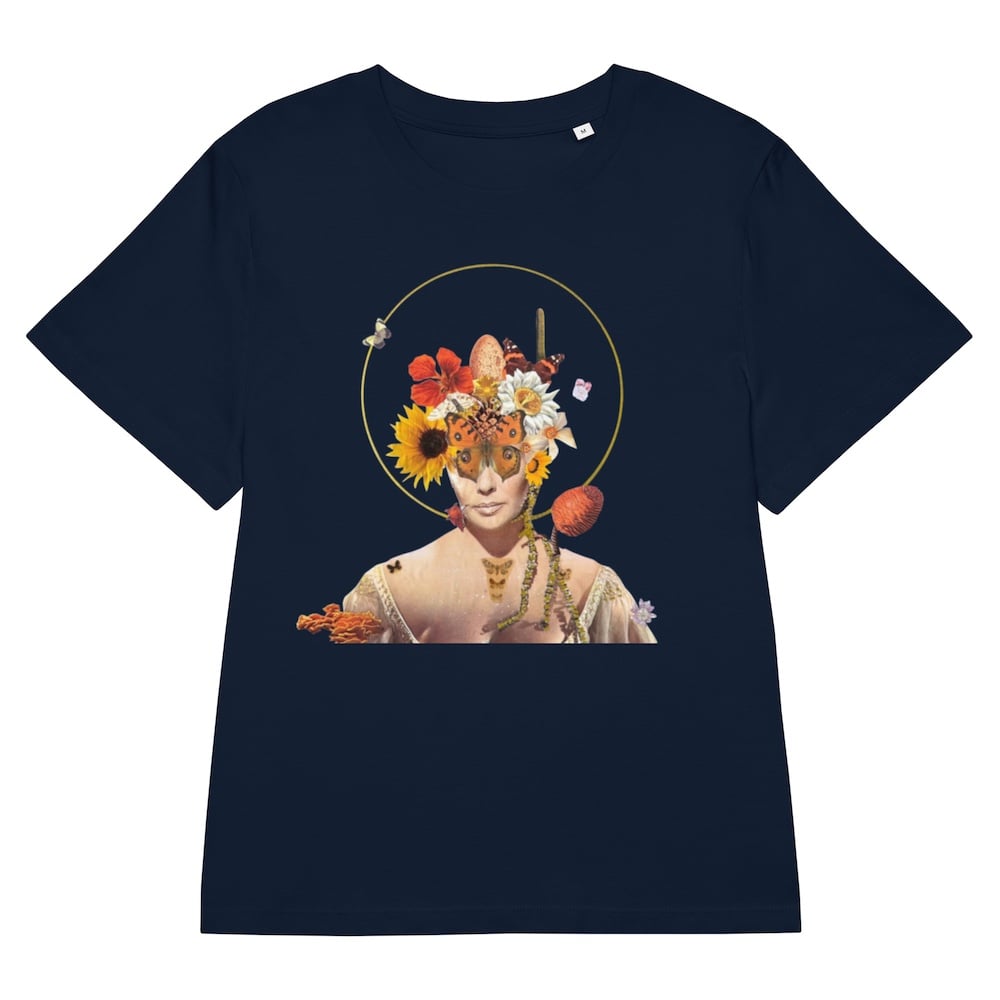This navy blue women’s fit organic tee is designed with a print of my original collage art "Let Your Light Shine From Within". Made from 100% organic cotton, the Stanley/Stella* brand tee offers a premium feel. The ribbed neck adds a polished finish.